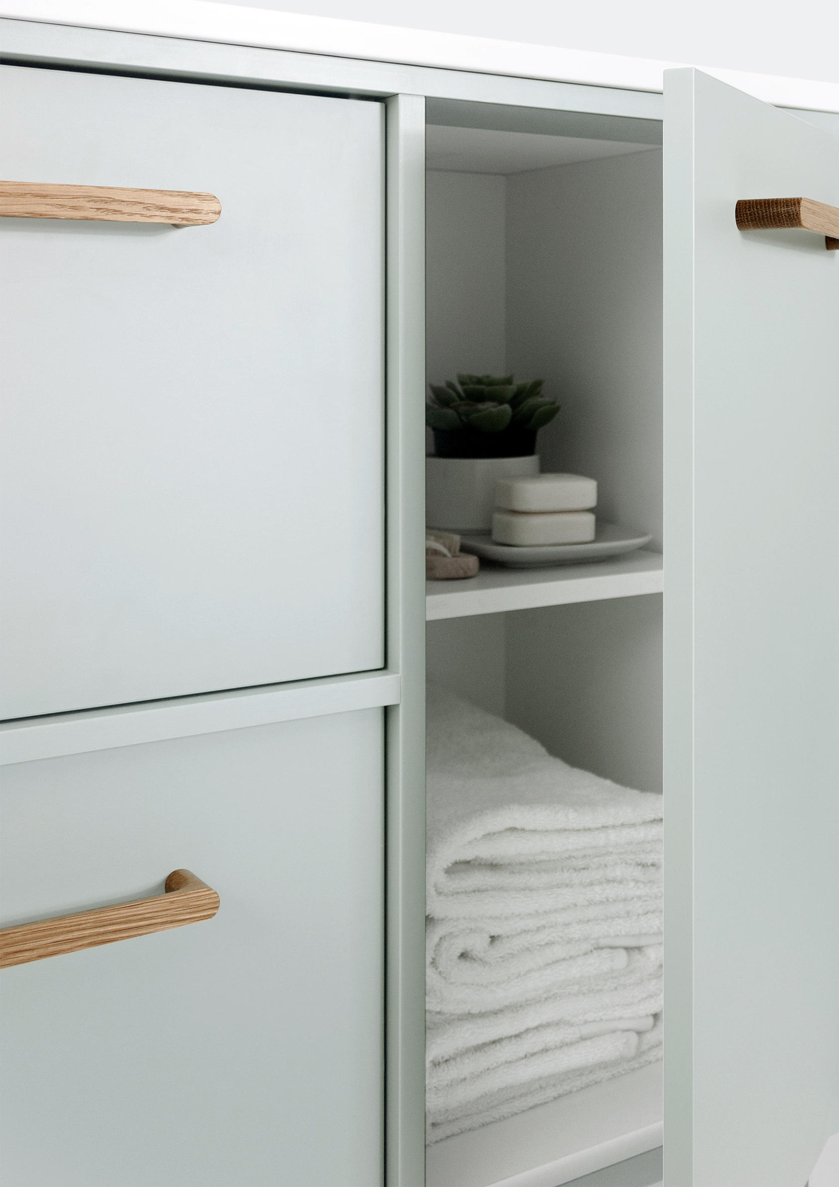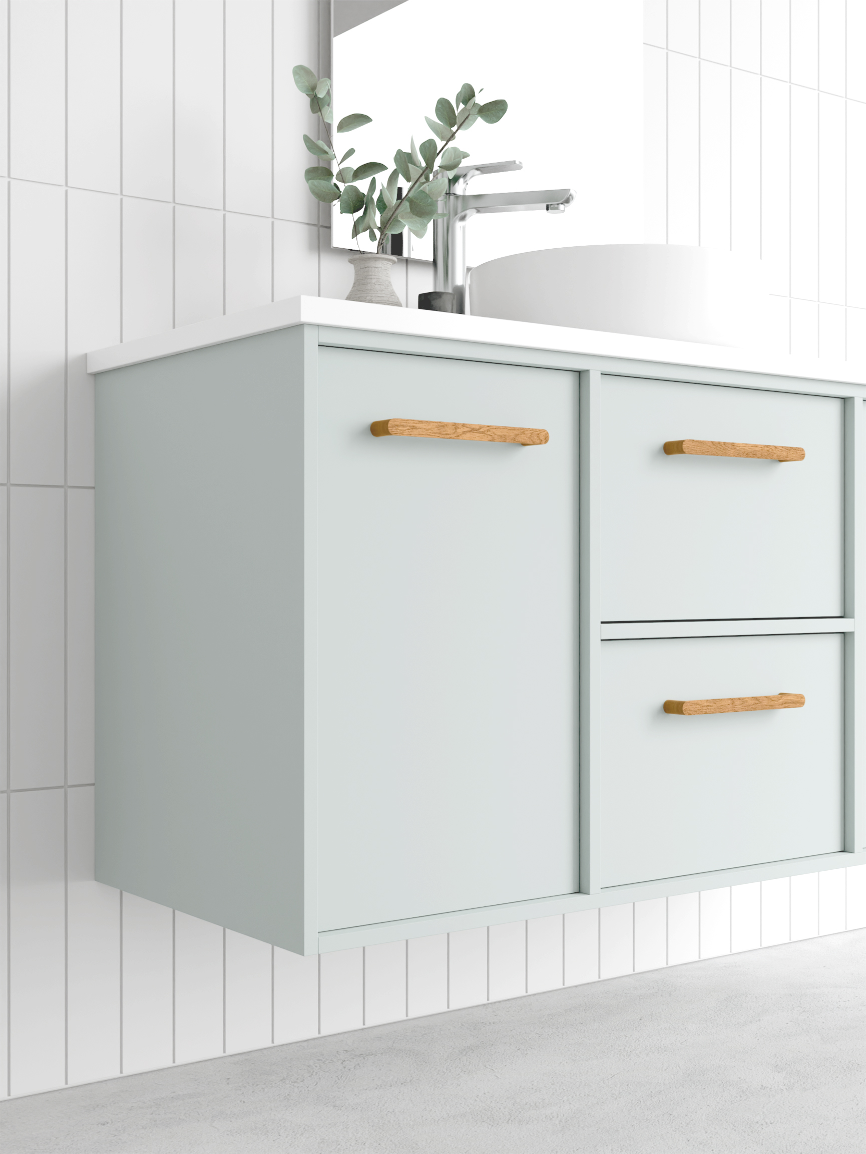 This sleek, contemporary range is inspired by the coastal landscape and is available in our entire Duragrain range of finishes. With ample storage in any of the available configurations, the defined shape of the Palm is accented by it's protruding edges and Pinta wooden handle.