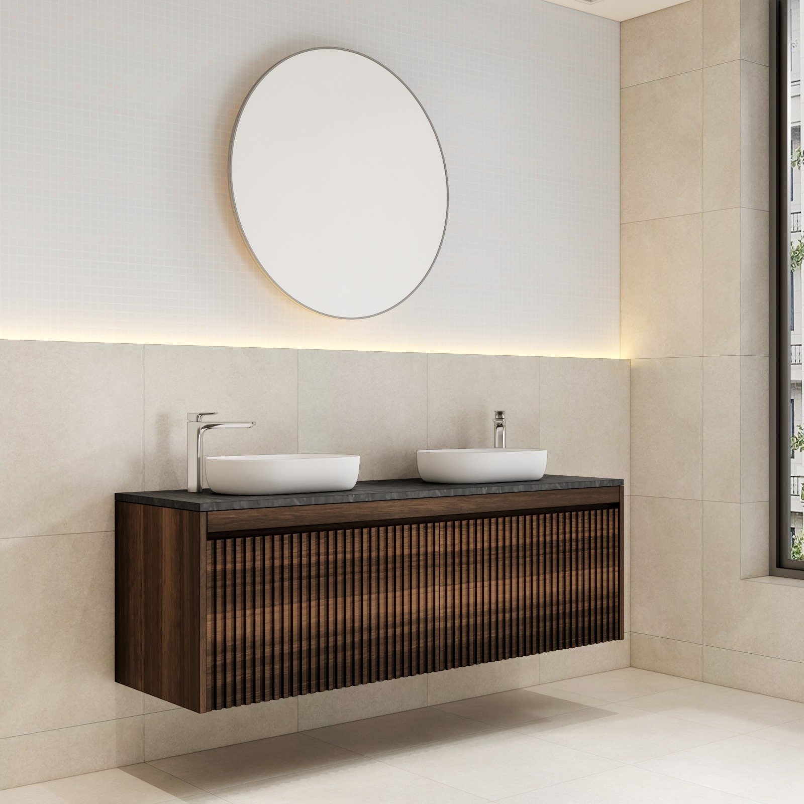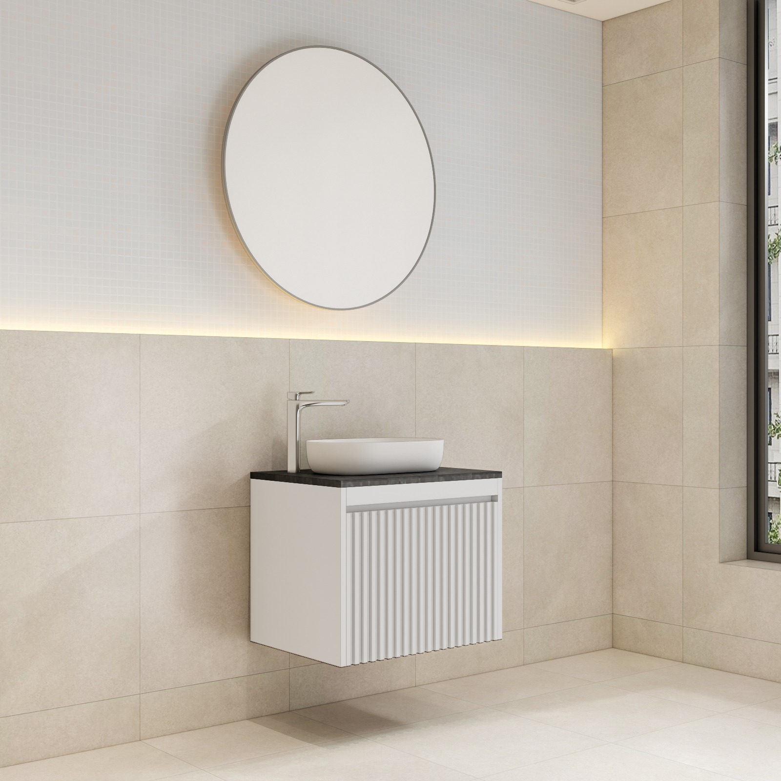 The Avoca Collection is a modern, wall-hung vanity range designed with a sleek fluted front panel available in a range of sizes. With flexible top options, customers can personalise their vanity further by selecting from a variety of engineered stone colours making it both stylish and versatile.